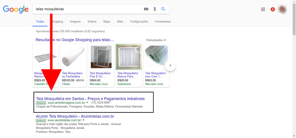 O Link Patrocinado é pago através do sistema CPC (o anunciante paga apenas pelo clique no seu anúncio) e posiciona seu site de maneira privilegiada. As campanhas de Link Patrocinado aparecem em um retângulo destacado acima dos resultados naturais e na lateral direita do site de busca conforme a imagem acima.